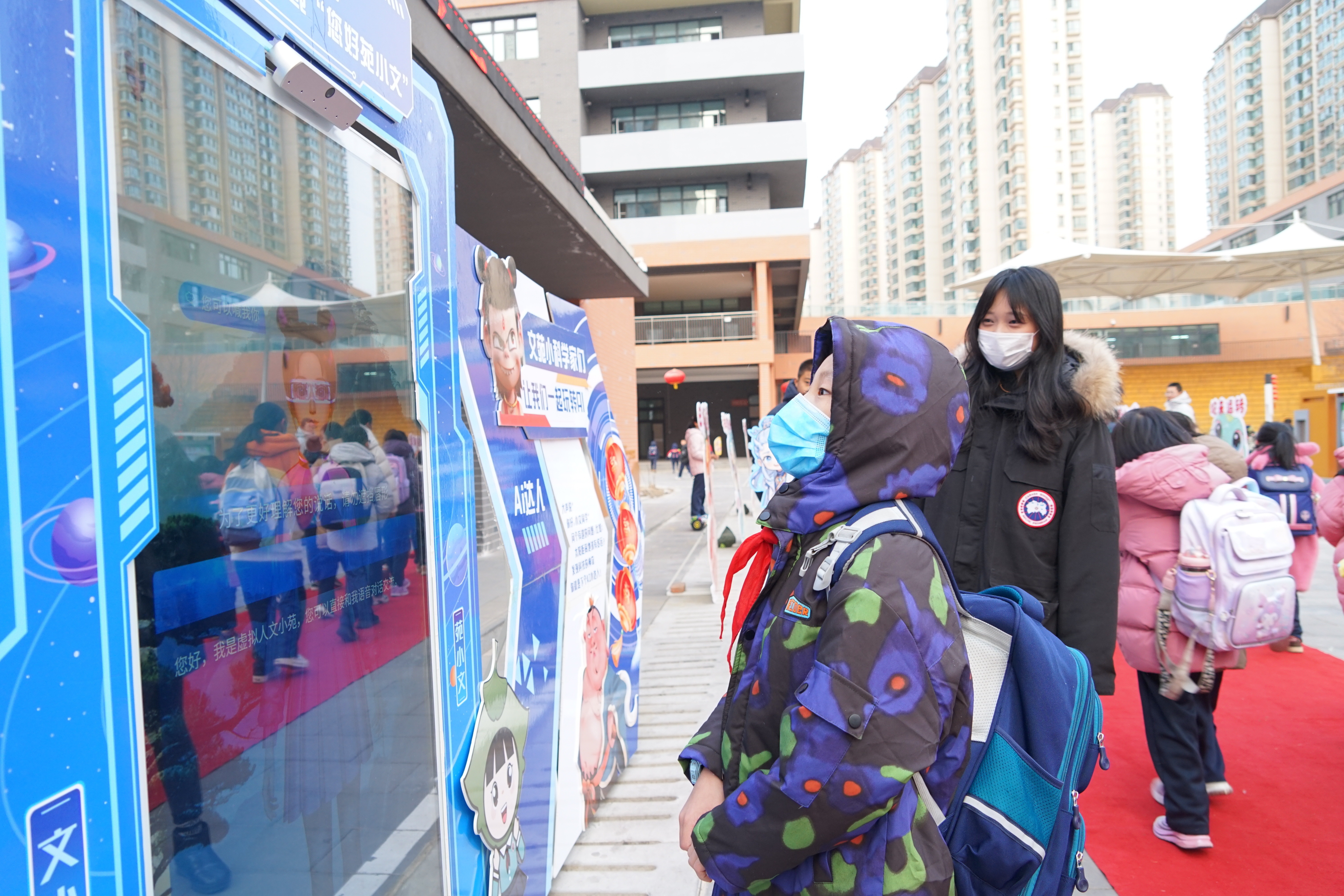 2月23日,西宁市文苑小学返校学生与AI设备互动问答。(新华社记者 张子琪 摄)“文小苑,你今年几岁?”“文小苑,开学第一天我需要做些什么……”在青海省西宁市城西区文苑小学,校门口的AI设备吸引了不少孩子的目光,他们抛出各类问题和AI机器人互动问答。文苑小学总务主任兰斌说,学校增设AI主题迎接学生返校,不仅让孩子们切身感受AI科技的魅力,也能提升他们探索科技的兴趣。