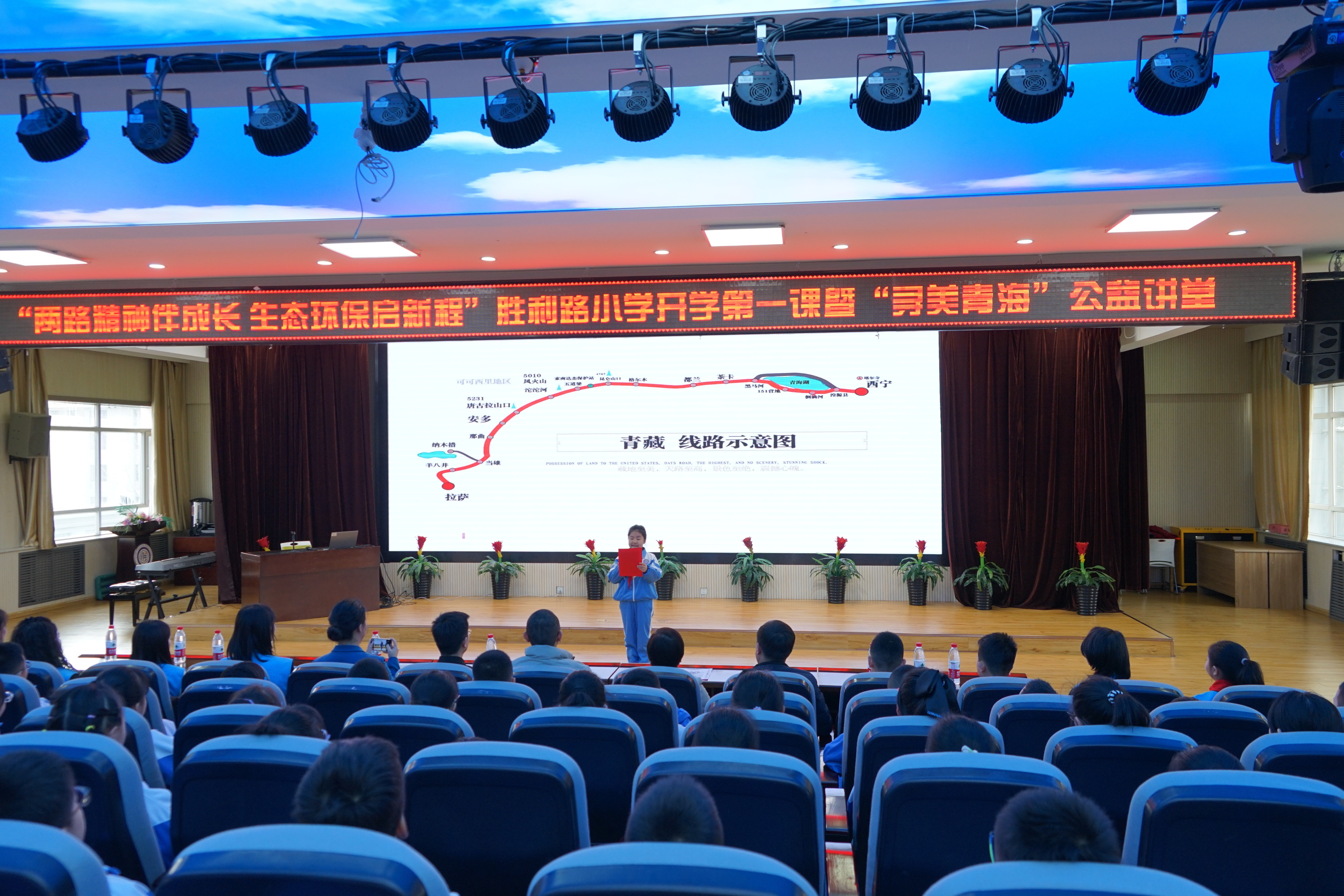 2月23日,西宁市北大街小学返校学生在操场留影。(北大街小学供图)“青藏公路全线平均海拔超过4000米,是世界上海拔最高的公路之一。在西宁市长江路与胜利路交叉口,有‘青藏公路零起点’标志,我们学校就坐落于起点附近……”在西宁市胜利路小学,主题为“两路精神伴成长,生态环保启新程”的“开学第一课”,内容丰富、形式多元,不仅有学生代表讲解青藏公路历史,还有青海省自然资源博物馆讲解员围绕生态教育授课。