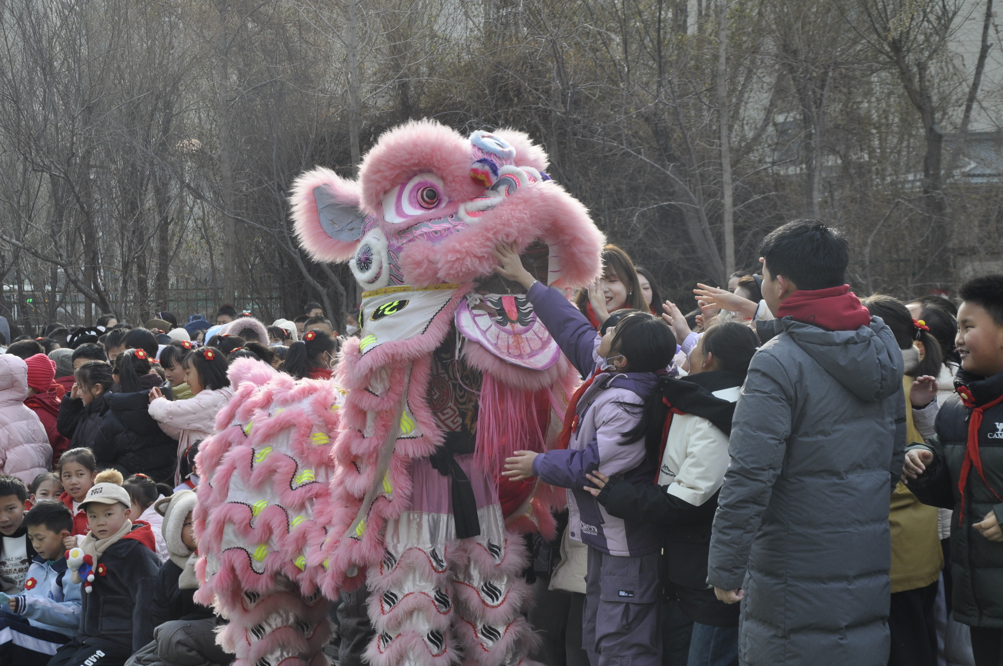 2月23日,西宁市城西区桃李小学邀请舞狮表演团队为孩子们营造喜庆的开学氛围。(桃李小学供图)开学典礼上,桃李小学每个班都收到了一份特殊的礼物。五年级五班学生马晨皓说:“老师给每班都发放了一包植物种子,我们班领到的是向日葵,准备栽种到班级种植箱,新学期希望大家都有收获,蓬勃向上!”